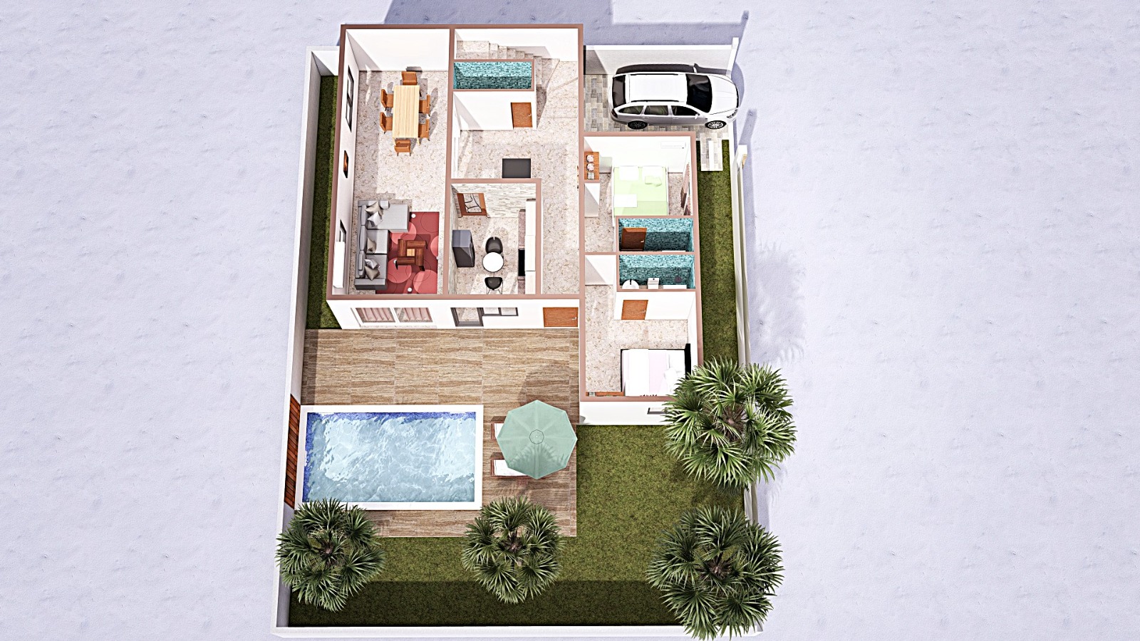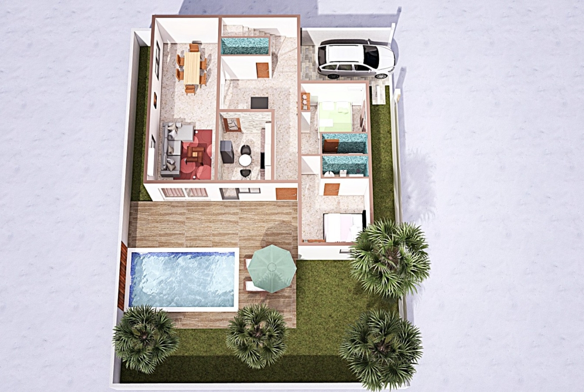 Yeene téranga se veut être un havre de paix. L’architecture a été réfléchie pour que les futurs acquéreurs se sentent chez eux dés les 1er jours. Les volumes nets et dégagés, permettent un aménagement accueillant. La lumière naturelle et les espaces sont la clé de la conception A cela s’ajoute une différenciation claire dans la lecture des zones jours destinés à une activité diurne et d’accueil d’invité et une zone nuit dédiée au calme et à la tranquillité.